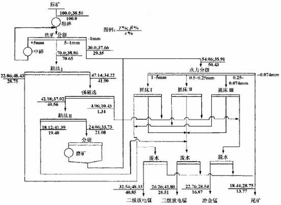 靖西錳礦重選-強磁-跳汰-搖床聯合工藝流程
