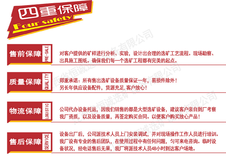 江西省恒誠(chéng)選礦設(shè)備有限公司專注砂金選礦設(shè)備數(shù)十年,有著多年的金礦選礦經(jīng)驗(yàn),真誠(chéng)為您在選金路上指引正確的思路.如果有任何疑問可直接與我們?nèi)〉寐?lián)系,我們將竭誠(chéng)為您服務(wù).我廠所有設(shè)備質(zhì)保一年,購(gòu)買我廠設(shè)備均享受四重保障:售前\質(zhì)量\物流\售后